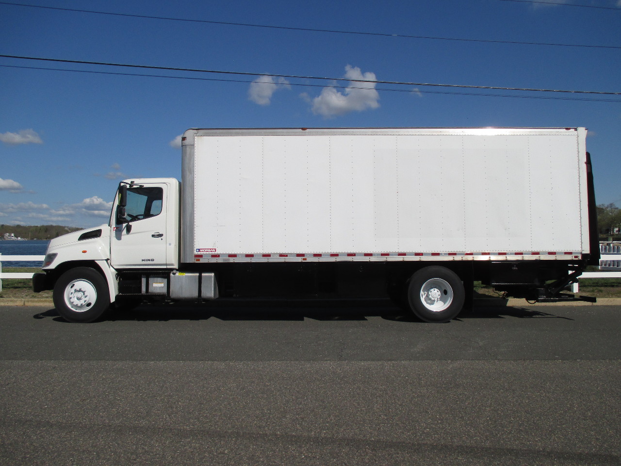 STOCK # 07503 2015 HINO 338, VERY LOW MILE, AUTO, 26 FT BOX TRUCK FOR SALE JO8E @ 260HP (ONLY 59,873 MILES), ALLISON 2500 RDS AUTO, 33,000 GVW, A/B, 11R22.5 TIRES, 26 X 91 X 96 VAN BODY W/ REAR ROLL UP DOOR, CURBSIDE DOOR, E -TRACK & SLATS, 3300 LB FOLD DOWN CANTILEVER LIFT GATE, CAN BE DE-RATED TO NON CDL